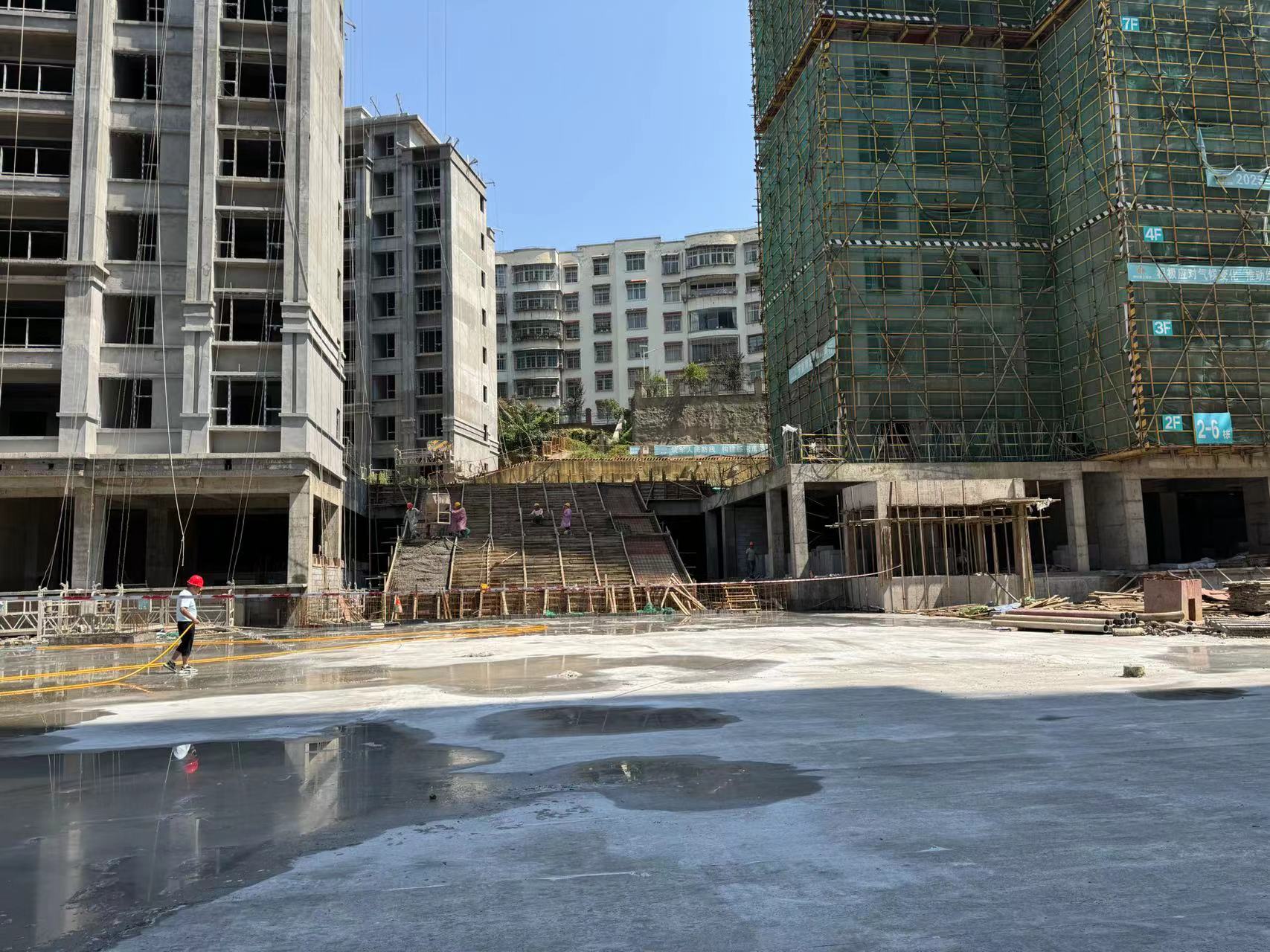 截止2024年7月25日,各栋主体工程全面封顶。具体为:2-2、2-5、2-8、2-9、2-10栋完成砌体、内外墙抹灰、窗框扶手外框安装、电梯安装、外墙漆吊篮安装、屋面沥青瓦安装等,2-9、2-10栋完成公共区域贴砖;2-3、2-4、2-6、2-7栋完成砌体工程,2-3栋外墙抹灰完成、内墙抹灰至18层,2-4栋内墙抹灰至14层、外墙抹灰已完成,公区正在贴砖,2-6、2-7二次结构施工至15层、内墙抹灰至10层、外墙抹灰至8层;地下室17-23轴负一层主体浇筑完成、正在施工11-17轴及3#车道。